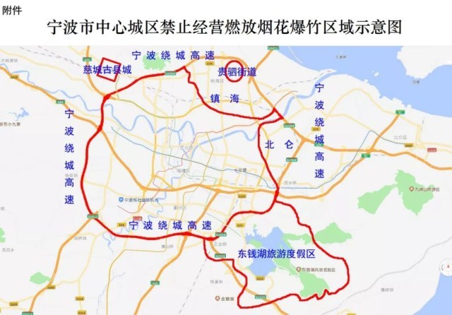 除了宁波市中心城区,其他区县(市)人民政府也在各自的行政区域内制订了禁止限制经营燃放烟花爆竹安全管理的政策,并发布了公告,敬请大家关注。同时根据法规规定,在文物保护单位,车站、码头、机场等交通枢纽以及铁路线路安全保护区内,易燃易爆物品生产、储存单位等九类禁止燃放地点也不能燃放烟花爆竹。