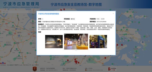 宁波市应急安全宣教场馆“数字地图”收录了全市101家通过评定的浙江省应急(安全)宣传教育体验(实训)馆,不仅包括安全生产、地震、消防、电力等各个行业领域的主题场馆,也涵盖了适合产业工人、青少年、社区居民等不同受众群体的功能模块,并配备一键全览、实时导航功能,市民通过“宁波市应急管理局”门户网站、甬派app“学习强安”学习平台等多方媒介,即可在线查看场馆的详细地址、开放时间、咨询方式、体验(实训)功能及实景照片等信息,其中一批场馆还将先行首发“主播走现场”视频,极大方便甬城市民、各类中小微企业挑选就近的、合适的应急(安全)宣传教育体验(实训)场地。