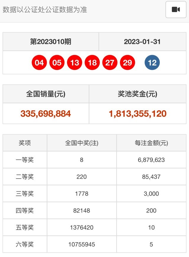2023年1月31日双色球开奖公告