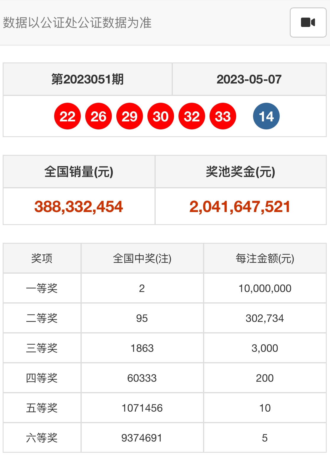 4月27日宁波彩友于宁波市慈溪市掌起镇洋山夜市北路7号的33022862投注站10元击中“双色球”510万大奖。这也是2023年宁波福彩第5次喜中500万元以上大奖!