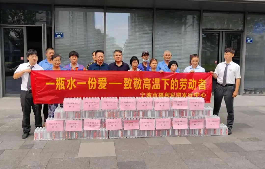 8月21日,宁波福彩带着矿泉水等清凉物资来到这里,为奋战在一线的数百名建筑工人送清凉。
