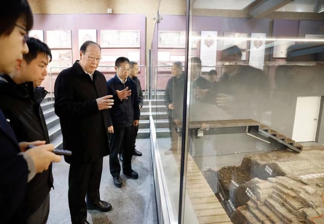 ▲ 彭佳学在调研宁波罗城遗址保护传承工作时强调:进一步加强文物古迹传承保护和非遗活化利用,在探索建设中华民族现代文明上彰显样板担当。