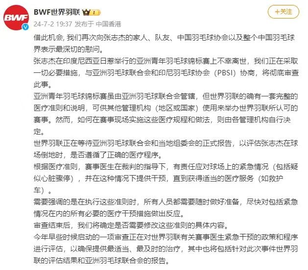 ▲ 国羽17岁小将张志杰比赛时意外离世,印尼羽毛球协会召开新闻发布会介绍事情经过。
