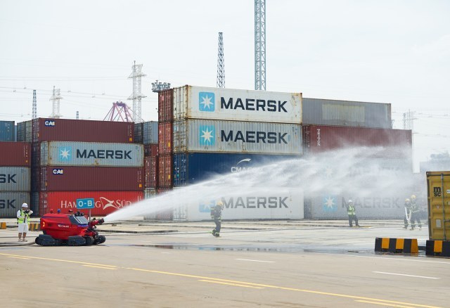 演练先后模拟防台Ⅲ级、Ⅱ级应急响应背景下,集团所辖全省港域相关码头进行防汛防台组织、船舶突发机电故障处置、重箱吹落火灾应急处置三个科目。演练涵盖多部门防台预警联动、信息系统报告、多角色协调指挥等环节,通过“动态模拟+实战实演”的方式,以视频直播全流程展示防御超强台风和应对突发事件的应急处置情况。