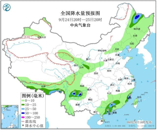中央气象台预计,24日20时至25日20时,四川南部、云南东北部、福建东部、广东中部和西南部、黑龙江西部、西藏南部等地部分地区有中到大雨,其中,四川南部、云南东北部、福建东部沿海、黑龙江西北部等地局地有暴雨或大暴雨。