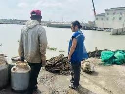在新浦镇新闸村,网格员苗云桑带头穿梭于渔港码头与渔民家中,逐户逐船地传达上级关于台风预警的最新信息,耐心解释台风可能带来的危害,并反复叮嘱渔民们务必按照要求回港避风,加固船只,转移至安全地带。