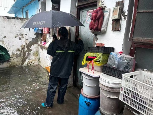 疾风骤雨中,东钱湖镇妇联彻夜不眠,坚守一线,筑牢防御“安全堤”。在象坎村,因台风暴雨影响,溪流水位持续上涨,巾帼志愿者第一时间下水开展管道排水工作。在万金社区,巾帼志愿者连夜对辖区进行安全巡查,走访社区高龄空巢老人,提醒他们准备好食物、应急照明等,切实保障居民群众的生命财产安全。