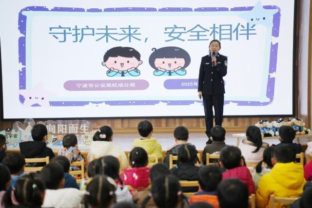 2025 年 1 月 8 日,在第五个中国人民警察节来临前夕,宁波市公安局机场分局的叔叔阿姨们走进了宁波市闻裕顺幼儿园江湾城园区,为可爱的小朋友们带来了一场别开生面的“守护未来,安全相伴”主题宣传活动,让我们一起来看看这场充满欢乐与知识的活动吧!