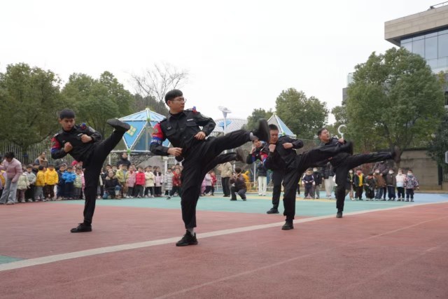 民辅警们带来了精彩的擒敌拳展示,那刚劲有力的动作、帅气威武的身姿,也有小朋友们情不自禁地跟着模仿起来,现场响起了阵阵热烈的掌声和欢呼声。