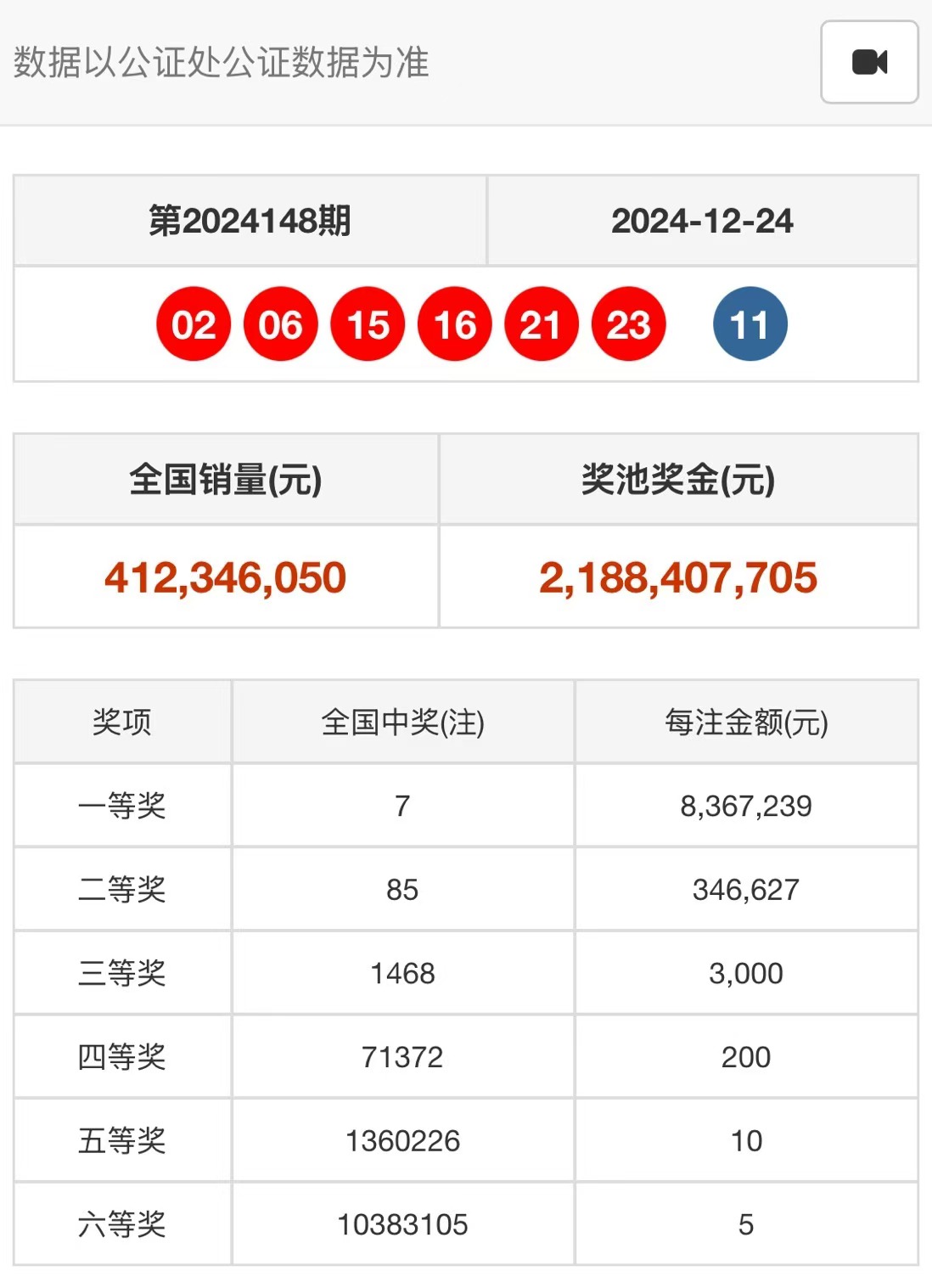 2024年12月26日双色球开奖公告