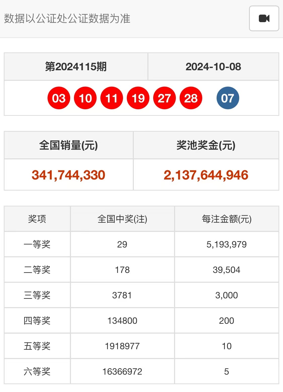 2024年10月10日双色球开奖公告