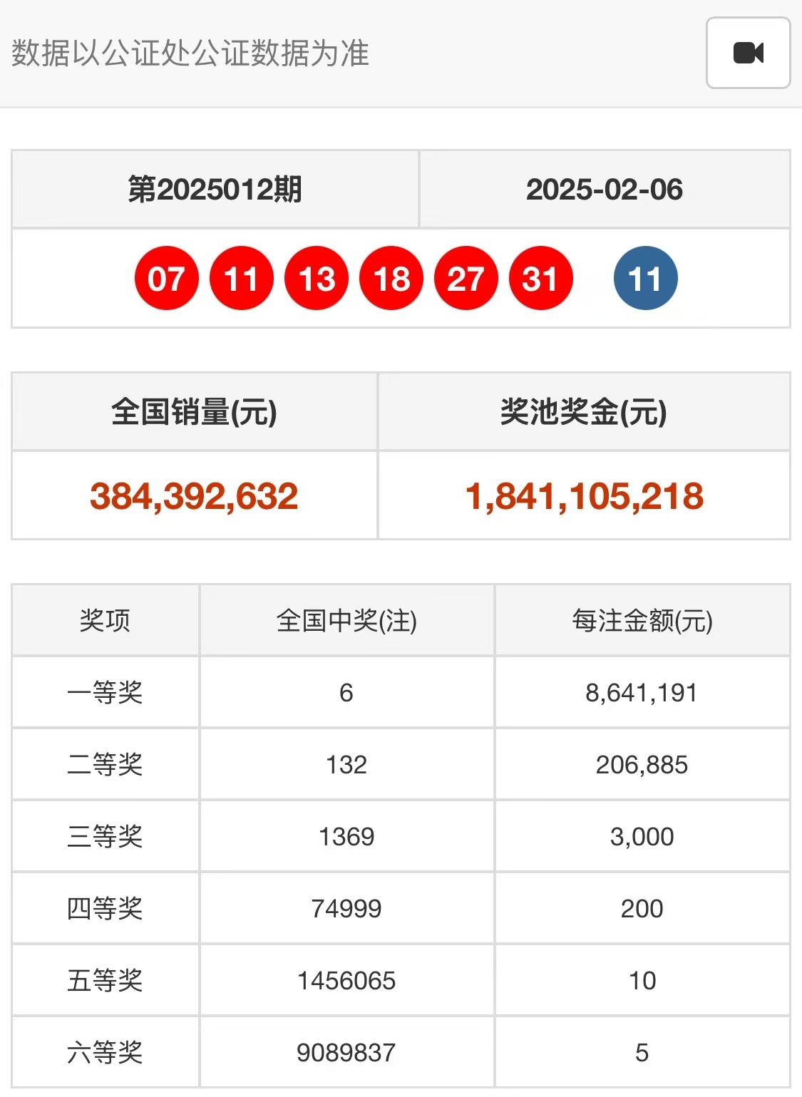 2025年2月6日双色球开奖公告