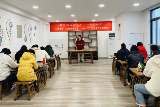 近日,“工惠有你”2025年奉化区“一技一艺”职工夜校公益培训第一课——非遗缠花温暖开场。