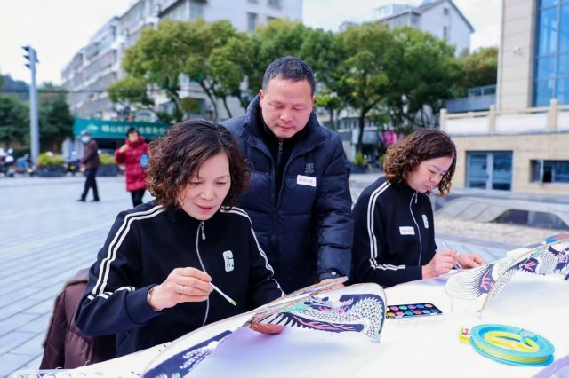 活动伊始,在剧院广场的成果展示区,来自奉化区各镇街道老年学校的银龄学员们正在展示风筝制作、豆腐制作、蓝印花布编织等各项技艺,吸引不少前来参加的学员和嘉宾驻足参观。
