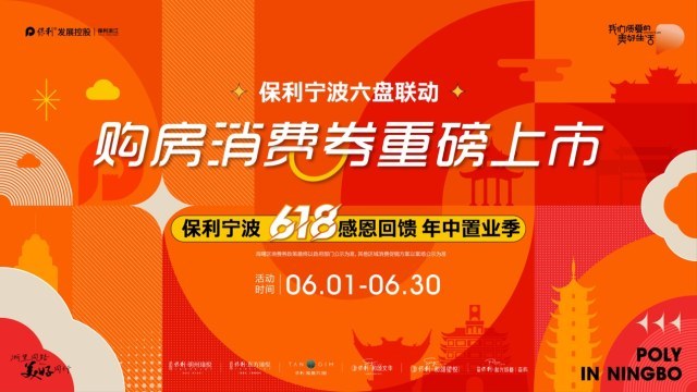 恰逢 618 年中置业季,保利发展宁波诚意满满,六盘联动开启感恩回馈盛宴。