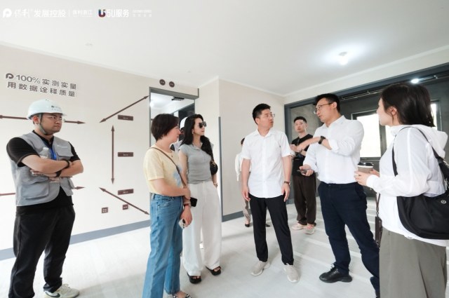 最后一站来到了东方瑧悦,正值首次工地开放日,由项目负责人亲自带队,深入实景示范区与工艺展示区,见证匠心品质的瑧造。在可触、可感、可体验的实景中,以见微知著的细节,悦鉴未来的生活点映。