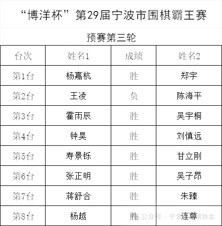 “博洋杯”宁波市围棋霸王赛作为宁波围棋界的传统赛事,多年来吸引了众多围棋高手参与,为推动宁波围棋事业的发展发挥了重要作用。本次赛事由宁波市围棋协会与宁波博洋集团联合主办,冠军奖金高达一万元,延续了往届的高规格,也足见主办方对赛事的重视以及对棋手们的激励。(通讯员李虹刚)