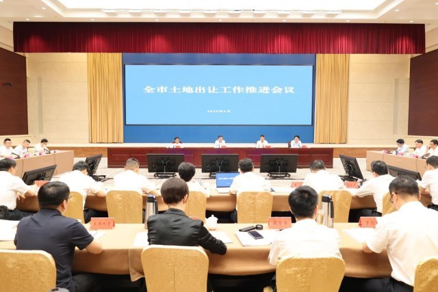 ▲ 汤飞帆在全市土地出让工作推进会上强调:全力打好土地出让攻坚战,为高质量发展提供有力支撑。