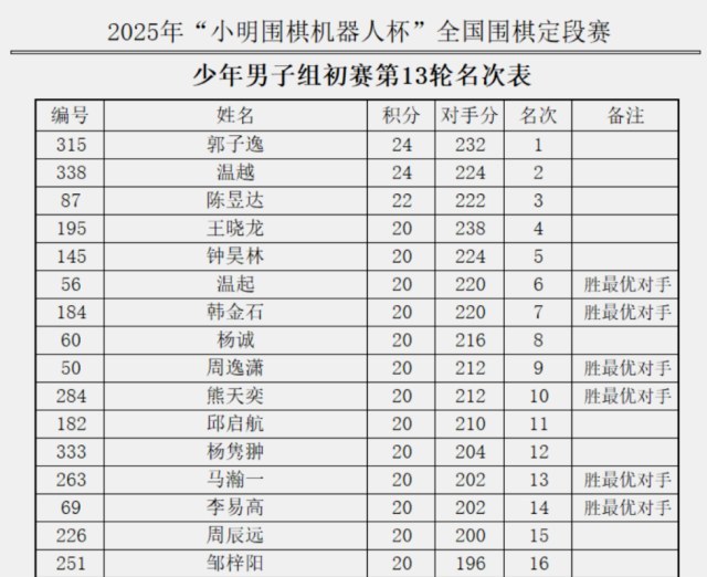 2025年“小明围棋机器人杯”全国围棋定段赛激战正酣,周辰远、郑善觉、虞宸炫、黄皓、王珞惜、肖丽朵、杨崇书、陈颖璐等多位宁波棋手进入复赛。