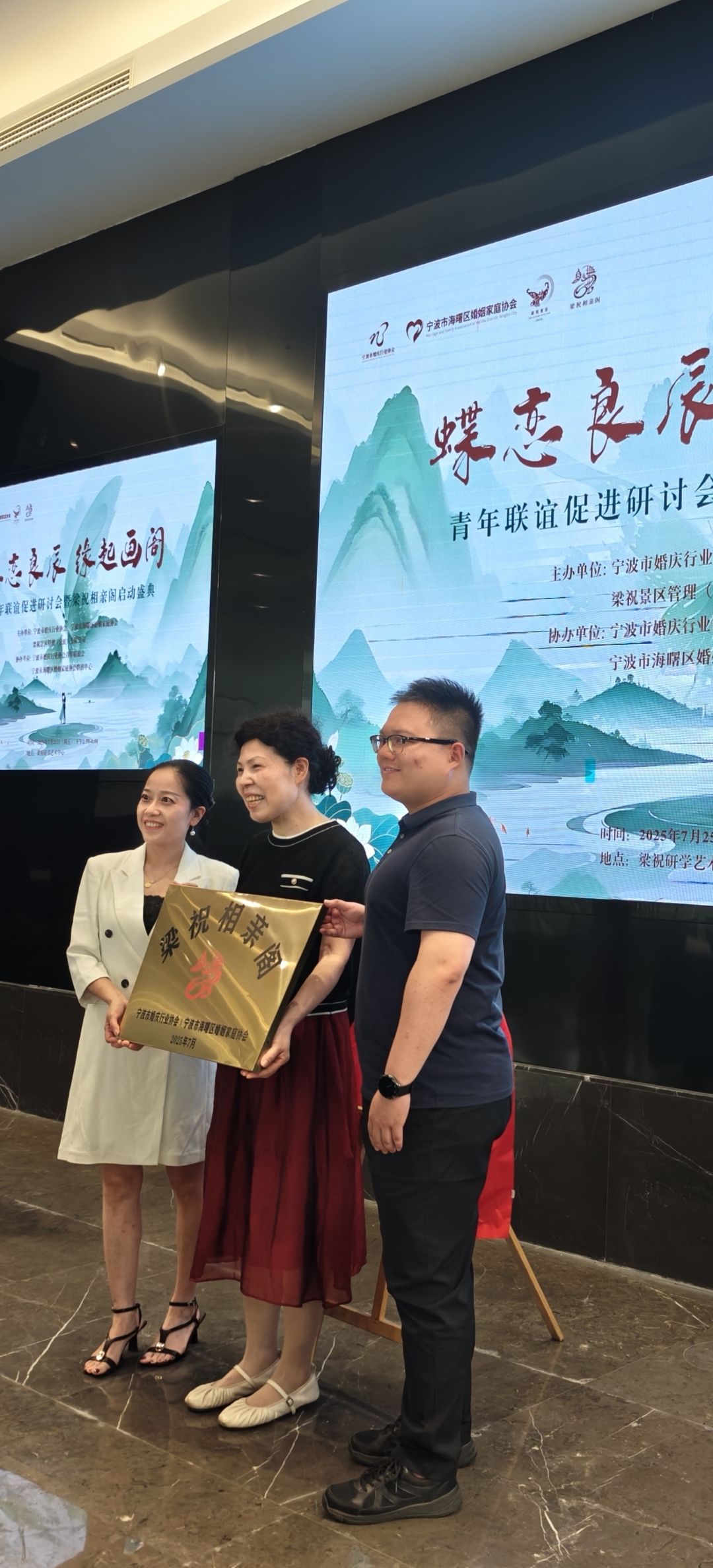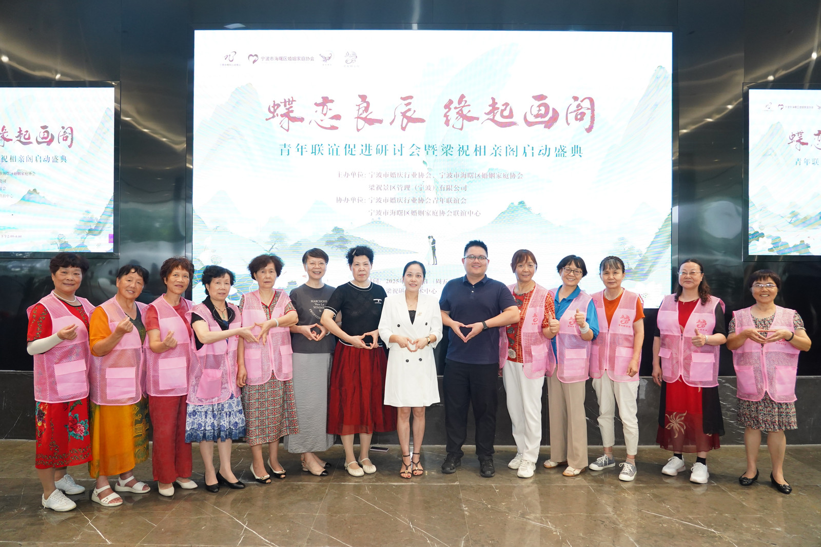 7月25日下午,在梁祝文化园内,一场融合传统文化与现代婚恋服务的创新实践——“青年联谊促进研讨会暨梁祝相亲阁启动盛典”隆重举行。此次活动由宁波市海曙区婚姻家庭协会与梁祝文化园强强联合,以公益红娘专业服务为内核,借助梁祝爱情IP的强大文化影响力,打造宁波首个“公益红娘主站”,为宁波西片区婚恋资源整合与全市“甜蜜经济”协同发展注入强劲动力。