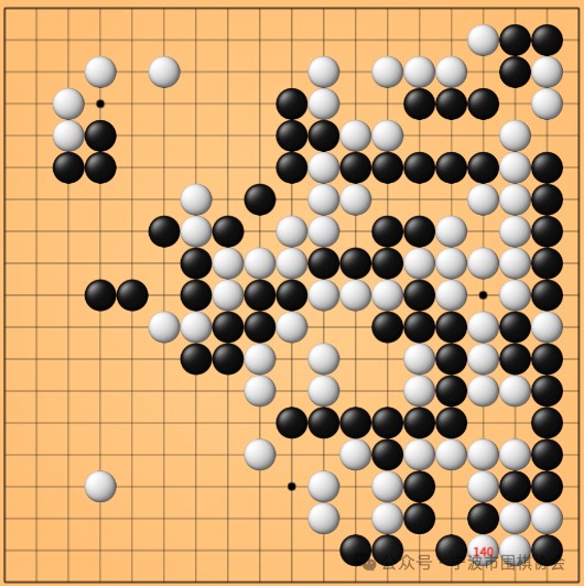 在杨崇书与陈树池的对战中,两位年轻棋手从开局便展现出强劲的竞技状态,摆开架势准备展开一场攻防大战。布局阶段,双方在中腹形成了各自的外势,如何运用好这些外势成为影响本局胜负的关键。黑方在第 33 手时率先向下方白棋 3 子发起进攻,拉开了战斗的序幕。上方战斗中,白棋借助左上角和右上角的布局形成一定模样,黑棋则机敏打入,不断冲击白棋的包围圈,最终在上方活出一块。随后,白棋棋形逐渐凝重,进攻难以获利,防守又无法获取实地,在进行至白 118 手时,因实地不足,只能打入右边黑阵,但在黑棋的严密进攻下,白棋只能单官连回,最终中盘告负。