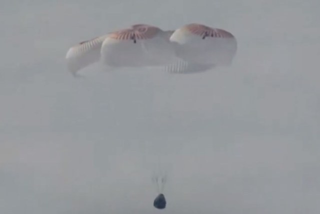 ▲ 美国“龙”飞船搭载国际空间站四名宇航员成功返回地球。