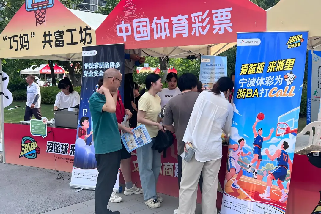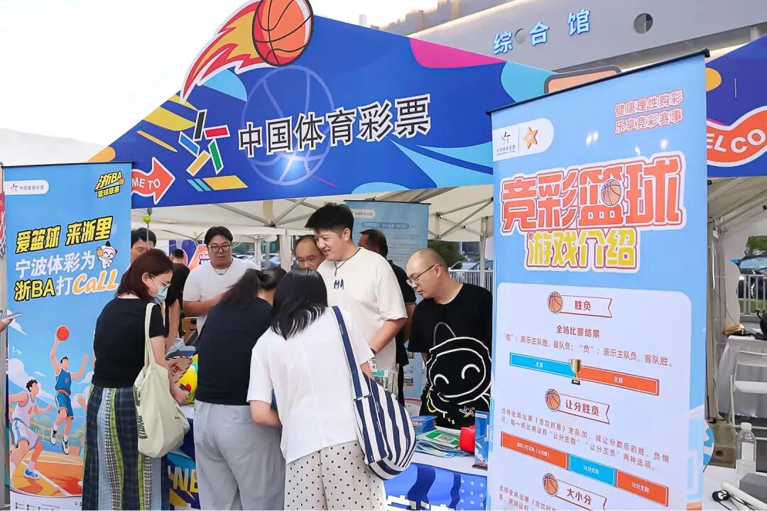 赛场之外同样精彩。7月16日至20日,“浙BA”宁波赛区比赛场馆外还设置有文旅体商嘉年华活动,除体育展示专区外,还有文旅非遗展区、游戏互动区和美食集市,观众在观赛之余可以打卡农旅文创、运动体验、特产美食、趣味游戏。宁波体彩也在现场设置了展位,在公益展示区,工作人员热情地向市民介绍责任彩票、购彩者权益保护、公益金的使用等体彩相关知识。在销售体验区,众多球迷和观众在等待比赛开始的间隙,纷纷体验即开票的乐趣。同时,宁波体彩还精心准备了环保袋、运动背包、手机背夹等体彩定制周边,吸引了众多球迷和市民踊跃参与互动。