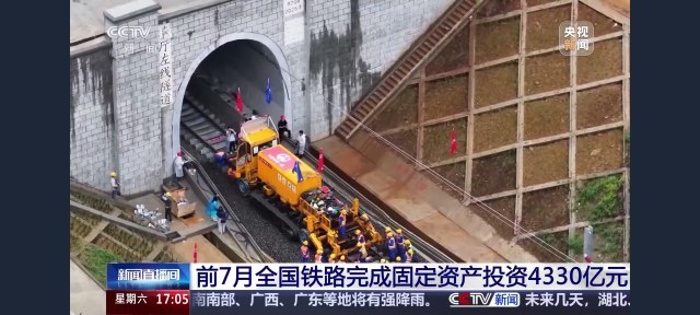 ▲1至7月全国铁路完成固定资产投资4330亿元,同比增长5.6%。