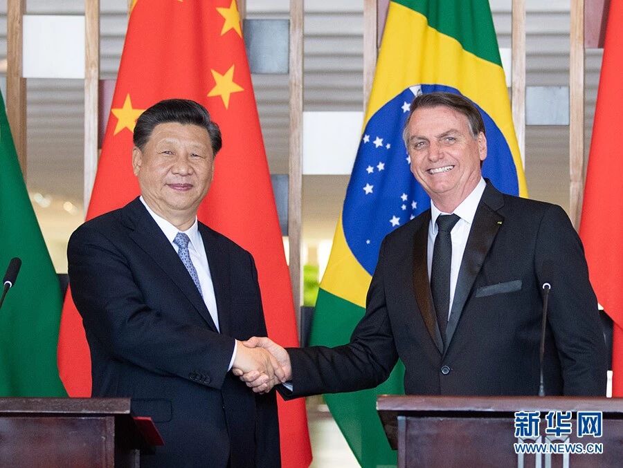 ▼习近平同巴西总统博索纳罗会谈。