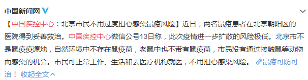▼北京发现两例鼠疫病例,不少市民感到恐慌。中国疾控中心昨天表示,此次疫情进一步扩散的风险极低。