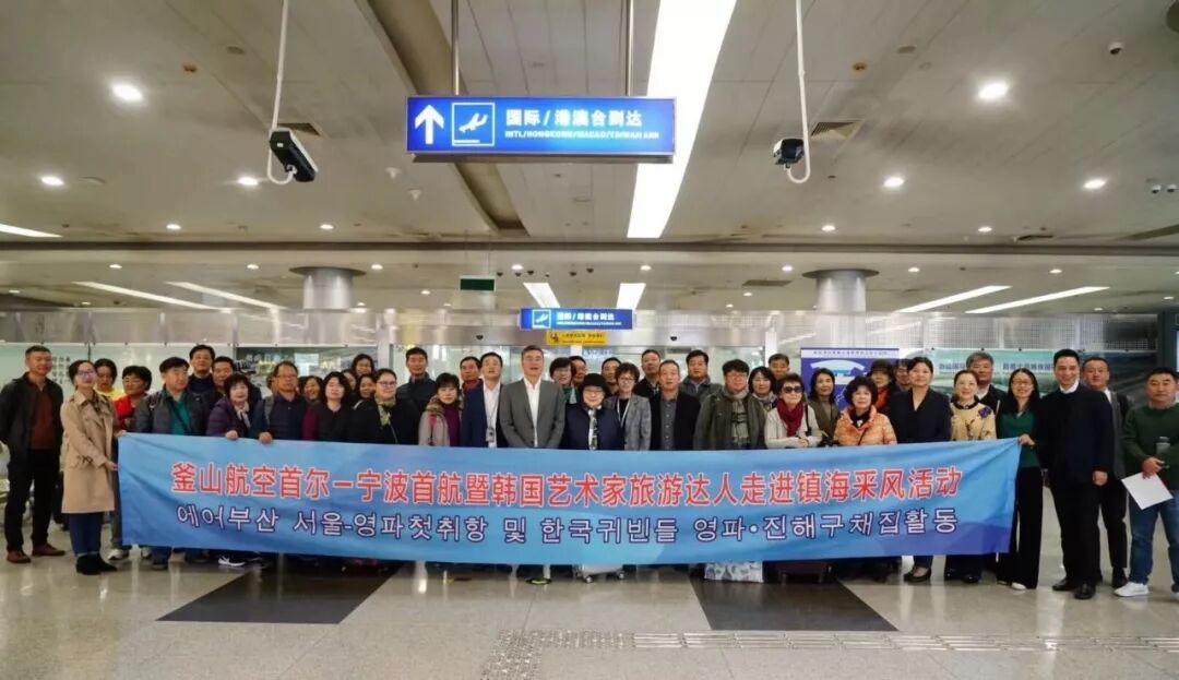 ▼首尔至宁波直达航线首航,百名韩国友人前来镇海采风观光。