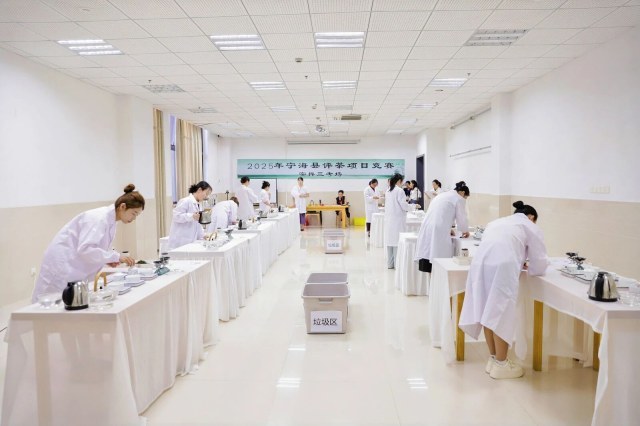 日前,由宁海县人社局、宁海县总工会联合主办的2025年宁海县评茶项目职业技能竞赛举行,大赛以“培育新时代工匠,助力乡村振兴”为主题,吸引了109名评茶能手同台竞技。