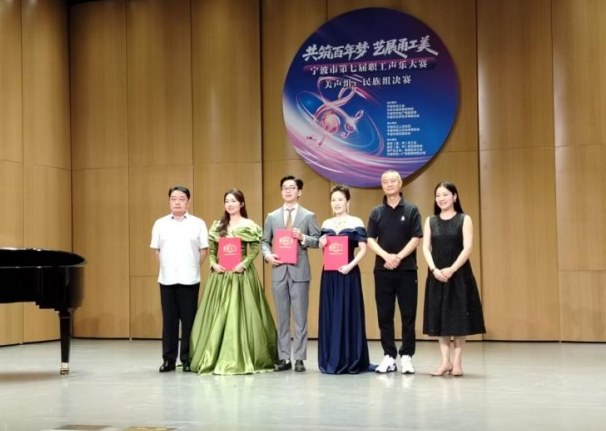 比赛现场,美声组、民族组、流行组三个组别的选手用卓越的舞台表现和高超的演唱技巧,为观众带来了一场美妙的视听盛宴。“我是一名高中老师,平时利用课余时间练习。今天来比赛的选手都很优秀,拿到民族组金奖,我感到很荣幸。”来自宁海县技工学校的杨杰笑着说。