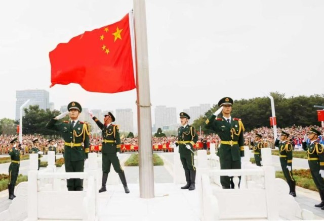 ▲ 我市隆重举行升国旗仪式,宁波市民为新中国成立76周年喝彩,共同祝福伟大祖国繁荣昌盛。