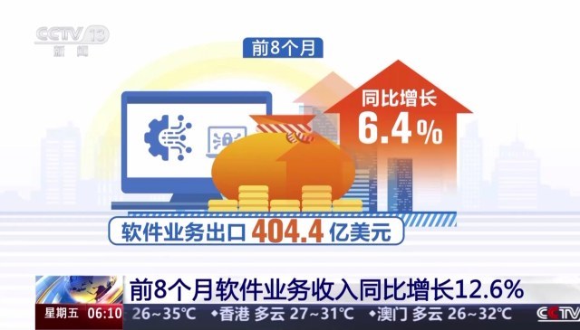 ▲ 今年前8个月软件和信息技术服务业运行态势良好,软件业务收入同比增长12.6%。