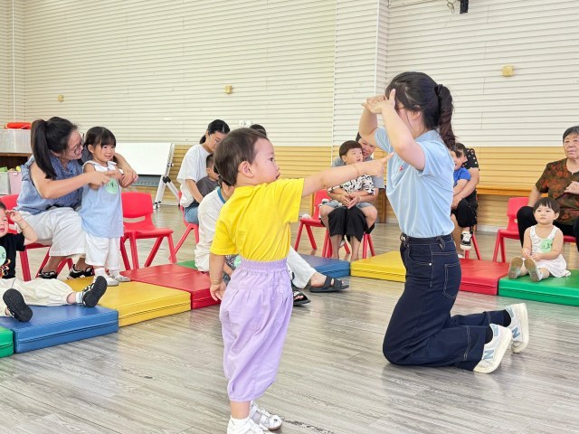 热闹的律动之后,是锻炼手眼协调性的手指操时间。“一根手指点点,两根手指剪剪……”在老师轻柔的指令下,宝贝们全神贯注,努力让自己的小手指做出各种可爱的动作。这看似简单的游戏,却是启迪宝贝智慧、促进大脑发育的“秘密武器”。许多家长在现场恍然大悟,纷纷表示“原来早教可以这么有趣又科学!”