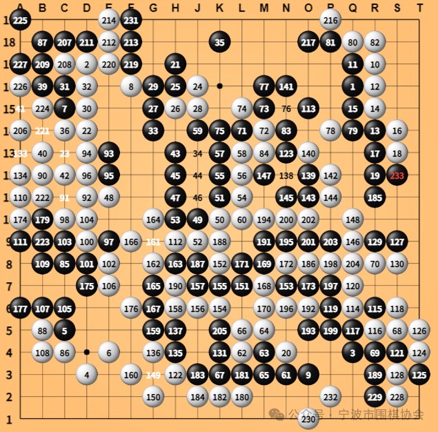 为满足广大棋迷的观赛需求,宁波多个围棋微信群对本场比赛的第二台、第三台对决进行了棋盘直播,让大家得以实时见证棋局进程,先睹为快。比赛中,双方选手凝神布局、沉着落子,展现出扎实的棋艺功底与稳健的竞技状态。第三台较量中,经验丰富的徐启荣执白出战,凭借精准的局势判断与高效的行棋节奏,仅用 130 手便战胜小将陈树池,为队伍拿下关键一分。