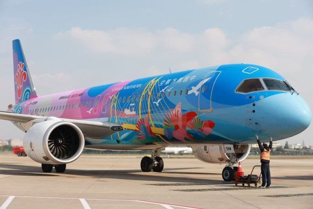 C919大型客机是我国首次按照国际通行适航标准自行研制、具有自主知识产权的喷气式干线客机,因此被称为“国产大飞机”。南航C919飞机采用164座三舱布局,包含8个公务舱座位、18个明珠经济舱座位和138个经济舱座位,飞机装配了定制化的客舱座椅等设施设备,全舱配置个人充电接口,为乘客提供便捷舒适的乘机体验。