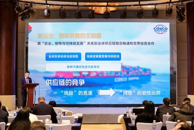 主题分享环节成为本次研讨会的核心亮点。宁波航运交易所副总经理蔡志德率先带来专家分享,围绕“港航贸一体化背景下的港口物流新发展”主题,结合行业趋势与实践经验展开深入解读。随后,宁波中基惠通集团、达升物流、宁波中远海运集装箱运输、菜鸟集团、浙江吉速物流、北京大成(宁波)律师事务所等6家企业、机构代表依次登台,分别从外贸服务赋能、东南亚物流布局、数智航运发展、汽车物流战略、跨境供应链合规等多个维度,分享企业在港航贸易领域的创新实践与前沿探索,为行业发展提供鲜活案例参考。