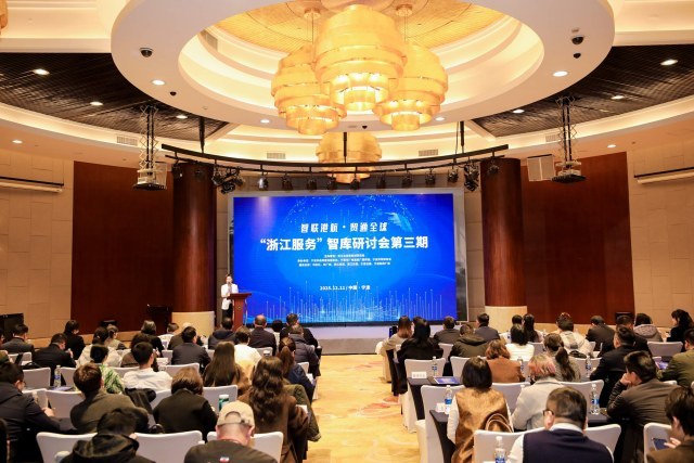 12月11日下午,“浙江服务”智库研讨会第三期在宁波东港喜来登酒店国际会议厅举行。本次研讨会以“智联港航・贸通全球”为主题,汇聚百余名行业精英、专家学者及政府相关负责人,共探港航物流与现代贸易深度融合路径,为浙江高标准打造全球现代物流发展高地、全球数字贸易高地,高水平建设现代服务业强省凝聚智慧力量。