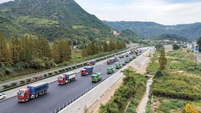 ▲ 我市重点交通工程建设攻坚提速,甬台温高速宁波南段恢复双向通行,奉化西环线甬山隧道建成通车。