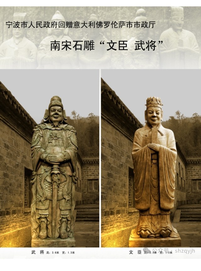 复刻南宋石刻《文臣武将》,作为宁波与意大利佛罗伦萨、德国海德堡友好城市的国礼 。