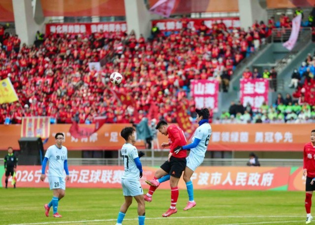 ▲ 绿茵逐梦,雨战燃情!2026宁波城市足球联赛揭幕战打响,奉化队主场收获“开门红”。
