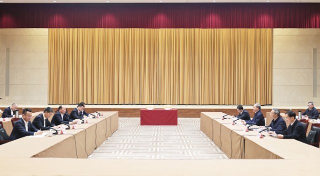 ▲ 汤飞帆与民主党派工商联无党派人士代表座谈,征求对政府工作报告的意见建议。