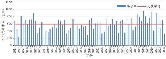 全市8月到12月降水量年际变化图