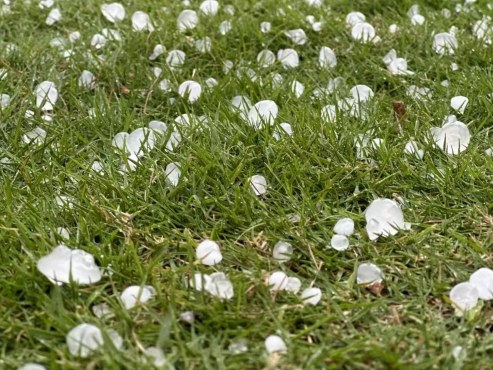 2025年5月1日天宫庄园附近冰雹实景(图源:宁波发布)