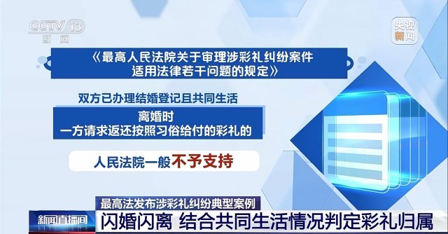 ▲ 最高法发布涉彩礼纠纷典型案例,涉及恋爱期间消费、婚前买车买房等。