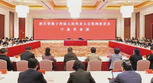 ▲ 宁波代表团三位省人大代表分享履职故事,诠释“根在基层、心系大局、言为民生”的新时代责任担当。