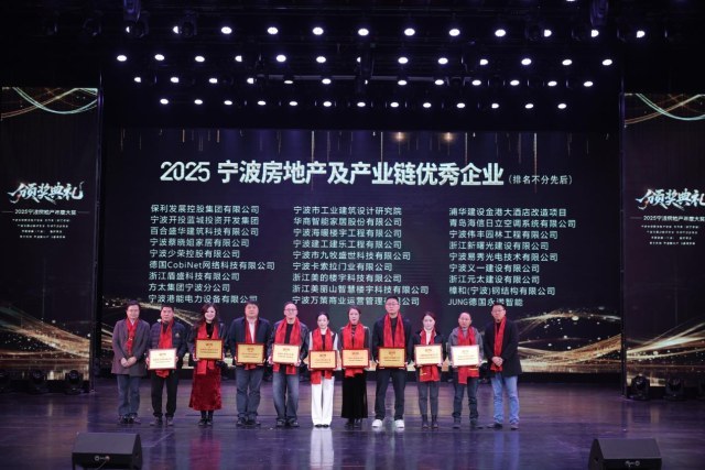 宁波全经联房地产智库第十二届年会暨2025宁波房地产年度高峰论坛&“方太之夜”宁波地产春晚于2026年1月24日盛大启幕。本次盛会由宁波全经联房地产智库主办,方太集团宁波公司独家冠名晚会,工行宁波市分行营业部、邮储银行鄞州支行、保利发展、保利置业、晨境里开发、富邦地产、华润置地、建发房产、绿城、江山万里、明洲置业、新城地产、金茂置业、中海地产、中景绿城、中能建、开投蓝城、缅甸浙商工业园等众多企业协办,采用线下相聚与线上直播同步的形式,吸引了房地产及产业链负责人、投资及金融专家、艺术家、媒体人士及各商协会负责人等各界精英共350余位嘉宾齐聚一堂,共探行业破局之路,共话发展新机遇。作为宁波房地产行业的年度盛会,极具权威与公信力的“2025宁波房地产年度大奖”也在现场隆重揭晓,成为行业关注的焦点。