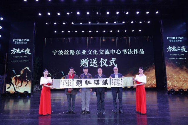 当晚的“方太之夜”宁波地产春晚环节精彩纷呈,晚宴与文艺表演同步上演,阿里旗下人形机器人以灵动舞蹈震撼开场,让在场嘉宾直观感受人形机器人时代的澎湃浪潮。当晚除了精彩的节目表演,还进行了甬商房地产分平台/宁波全经联房地产智库2025下半年新增理事授牌,宁波丝路东亚文化交流中心的张明华、邹大鸣先生向甬商房地产分平台/宁波全经联房地产智库赠送了书法作品,鼓励平台的文化交流活动,彰显了行业发展的文化精神滋养。当晚,宾客们欢聚一堂,共赏精彩节目,共度美好时光。